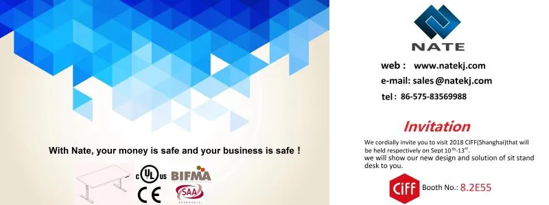 New styles of electric standing desks with improved control system will be displayed during CIFF. Please contact our salesperson for showcare visiting and on-site meeting.It is our pleasure to meet you on the Fair.